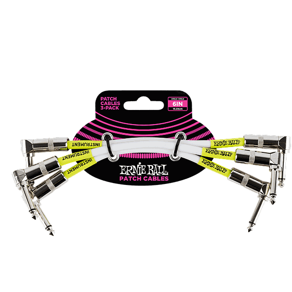 Ernie Ball - 3 Cables de 0.15 mts. Angulado / Angulado, Color: Blanco Mod.6051